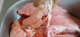 将猪肺切块,用手搓洗,以去猪肺气管中的泡沫;