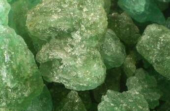 绿矾和绛矾在外观上有明显的区别,绿矾是柱状或者粒状的集合体,外观为不规则状,色泽蓝绿或者绿色,而绛矾则是细粒集合体,而且呈不规则的块状,它的表面不平,但有一面较为平整,一面则有大小不一的小孔,色泽多为红色。