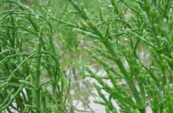 海蓬子是一年生草本植物,它的高度多在十到三十五厘米之间,茎部直立,多分枝,对生肉质,外表多是灰绿色或者紫红色,叶片几乎不发育,以鳞片状存在。它每天夏天开花,秋天结果,果实为长圆形,种子直立,收取以后能榨油。