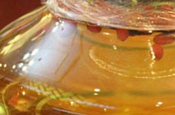 4、把冰糖放在锅中融化成金黄色,放凉以后去渣,加入到泡好的药酒中调匀,自制的人参枸杞酒就加工完成可以饮用了,每天的饮用量不定超过二十克。