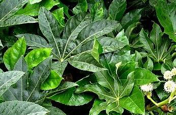 八角金盘是一种四季常青的绿色植物,它在每年十到十一月间开化,可以制成盆栽也可以在花坛中栽培,是各地家庭中常见的摆放花卉之一,这种植物在美化环境的同时,也能净化室内空气,给人们提供清新的空气。