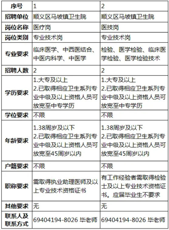 顺义区马坡镇卫生院公开招聘编外4人公告已发布,医药人才网为大家收集整理事业单位卫生系统招聘信息,提供相关备考电子版资料和辅导课程。更多卫生人才招聘信息,可点击北京卫生人才招聘栏目。
