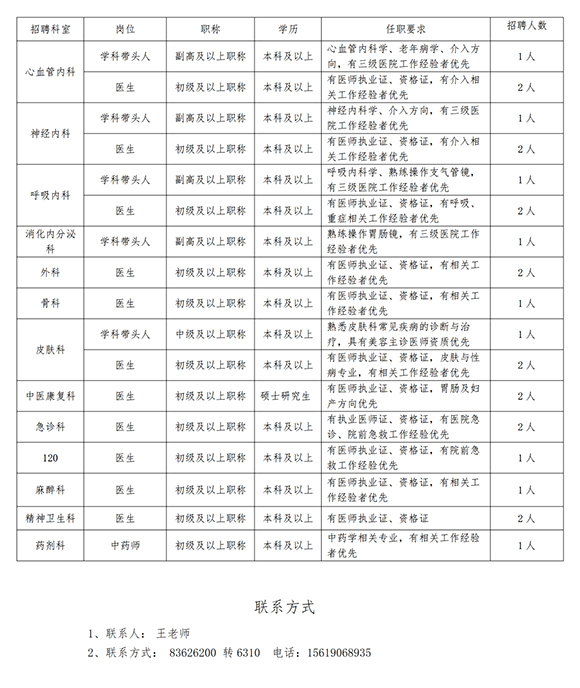 根据医院发展需要,现面向社会公开招聘以下岗位人员,有关事项公告如下: