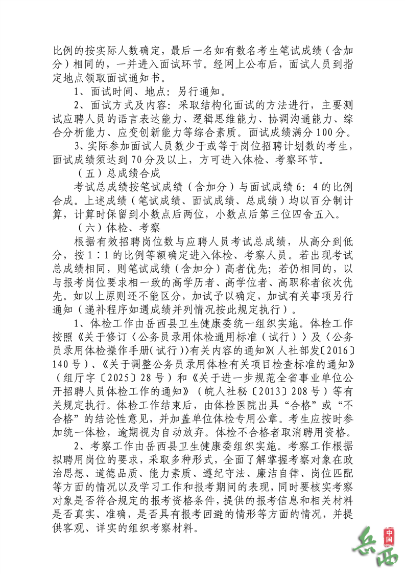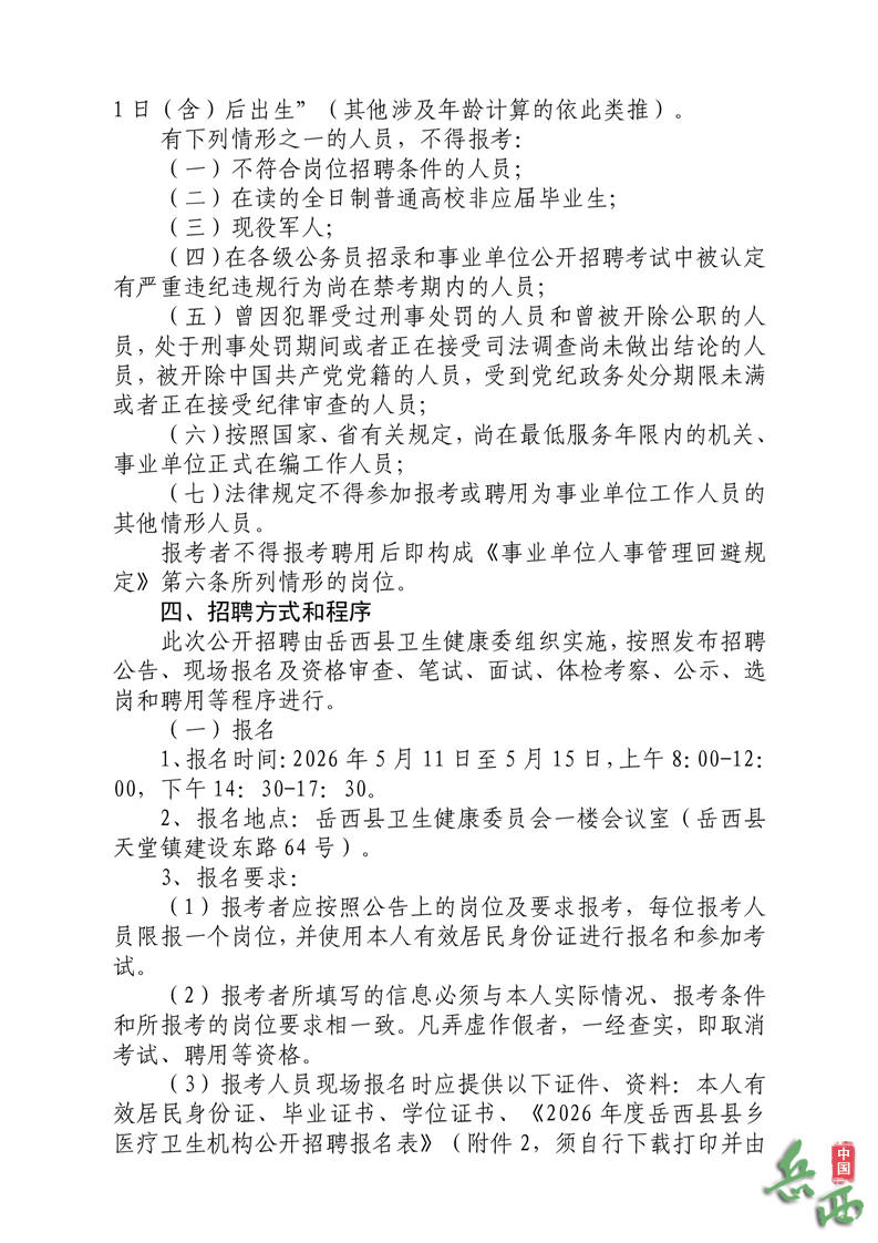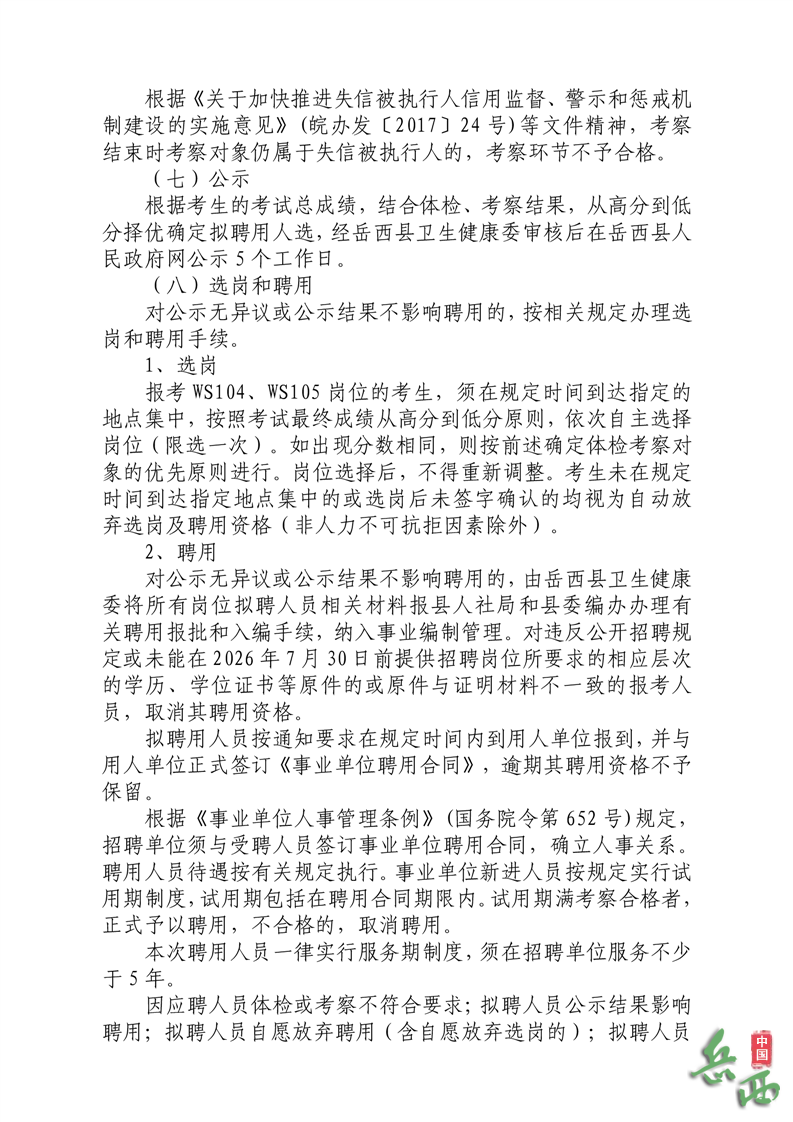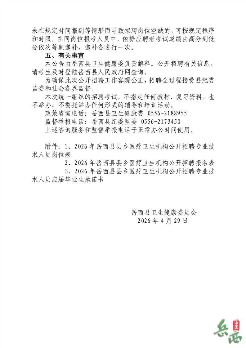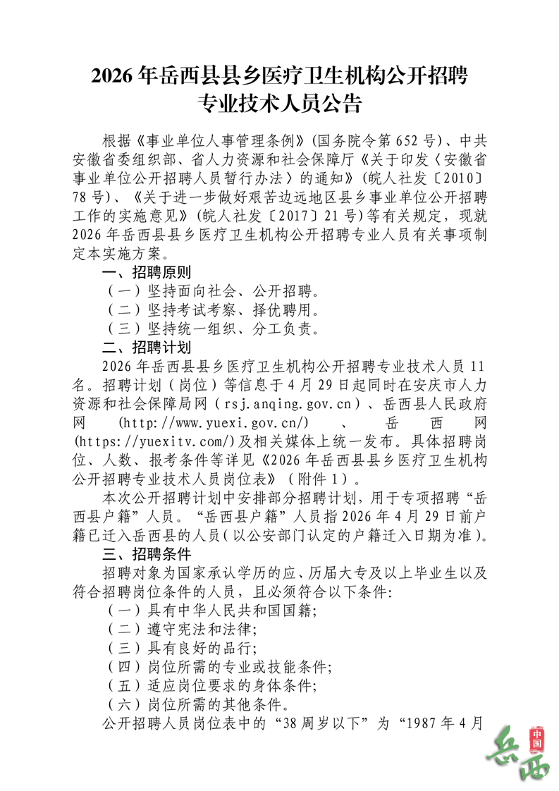 2026年安庆岳西县县乡医疗卫生机构公开招聘专业技术人员11名公告已发布,医药人才网为大家收集整理事业单位卫生系统招聘信息,提供相关备考电子版资料和辅导课程。更多卫生人才招聘信息,可点击安徽卫生人才招聘栏目。