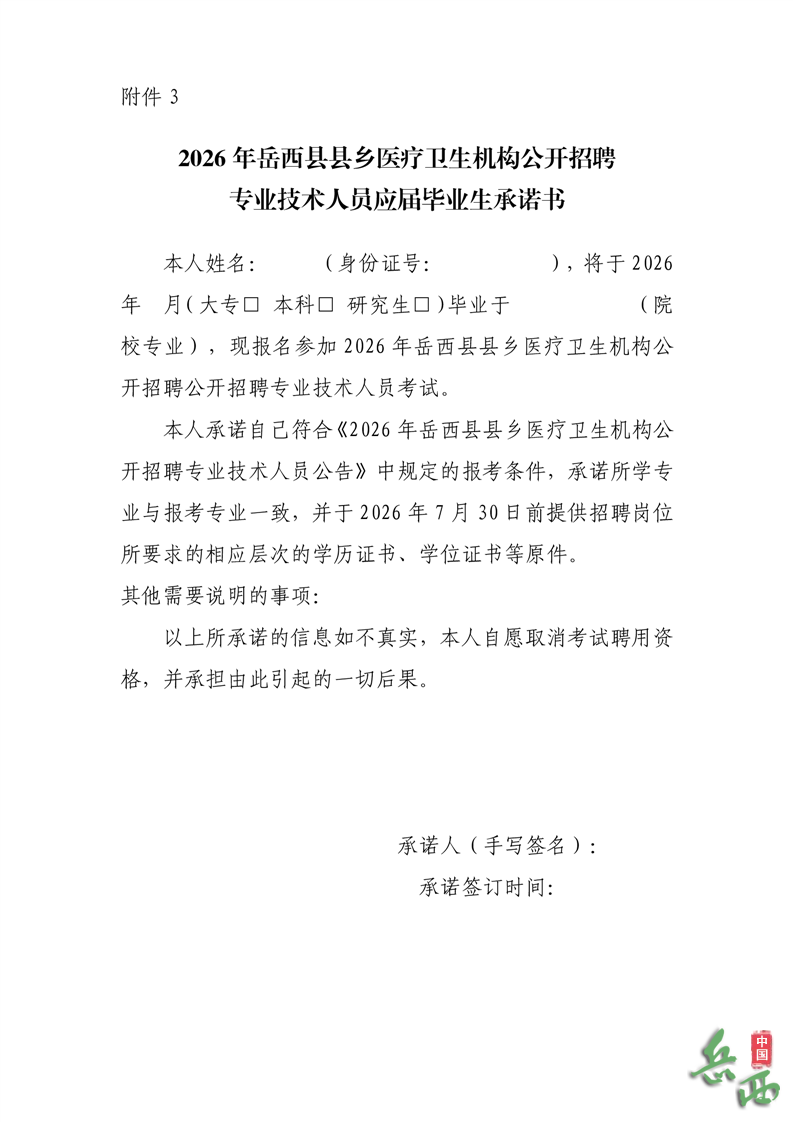 附件3:2026年岳西县县乡医疗卫生机构公开招聘专业技术人员应届毕业生承诺书.docx